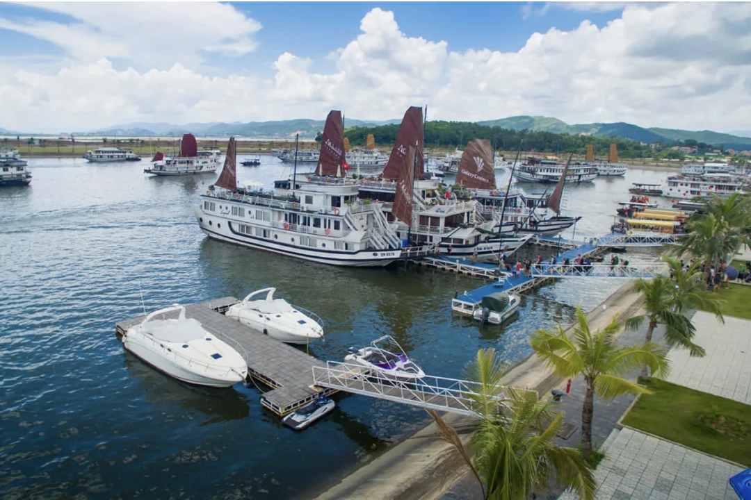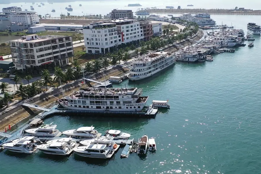Tuan Chau Port is an architectural marvel of scale and efficiency. Its allure lies in the vast, horseshoe-shaped harbor filled with white-hulled vessels, offering a grand sense of anticipation as the emerald bay waits just beyond the breakwater. This is the definitive starting point for a classic Halong odyssey.