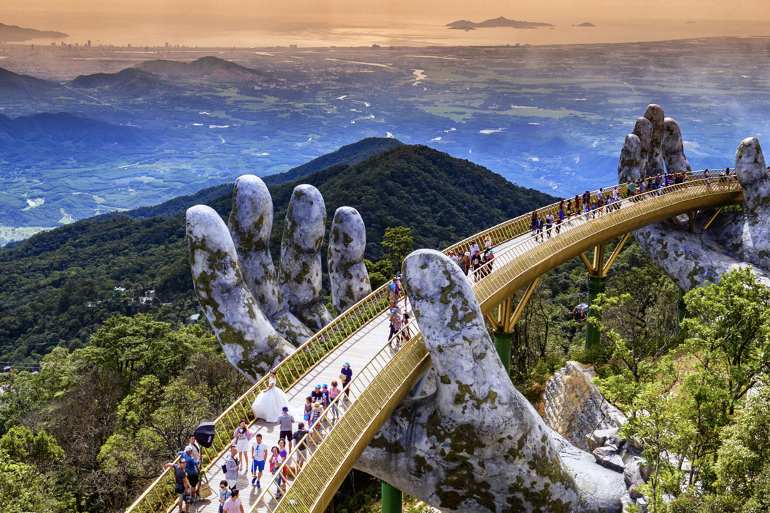 The Golden Bridge is one of Vietnam’s most famous landmarks and a highlight of Ba Na Hills. Supported by two giant stone hands, the bridge appears to rise from the mountainside while offering panoramic views of the surrounding forests. The design has attracted global attention and has become a must-see attraction for travelers visiting Da Nang. Access to the Golden Bridge is included in the Ba Na Hills entrance ticket, which typically costs around 900,000 VND (approximately 36 USD) for adults.