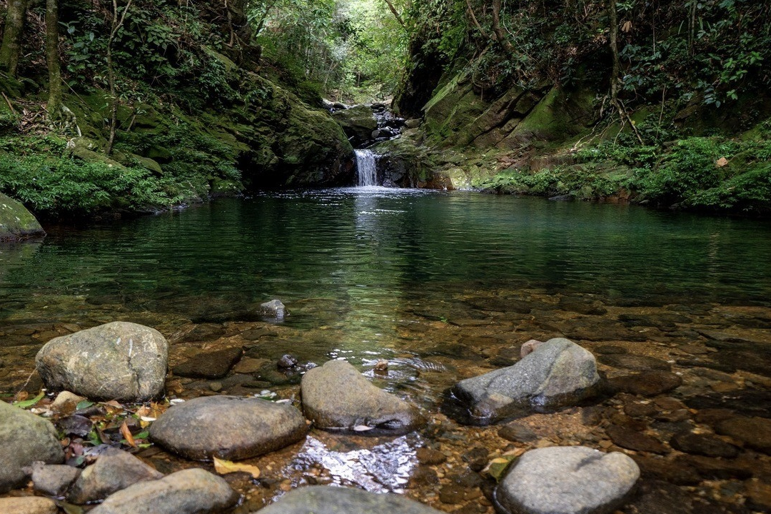 Descending from the summit, the Five Lakes Trail (Ngu Ho) reveals the park’s aquatic heart. This series of five pristine lakes, connected by gentle cascades, offers the perfect opportunity for a refreshing swim in crystal-clear mountain water. The journey continues to the legendary Do Quyen (Rhododendron) Waterfall. Plummeting 300 meters down a sheer granite cliff, it is a masterpiece of hydraulic power. In the spring, the surrounding cliffs are painted in vibrant shades of pink and red as the namesake rhododendrons bloom. The descent of 600 stone steps to the base of the falls is a rewarding challenge, providing a front-row seat to one of Southeast Asia's most dramatic natural displays.