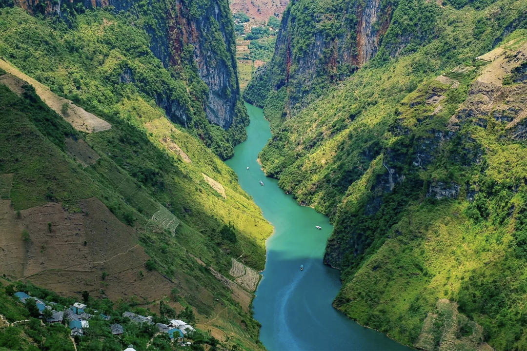 At the base of the towering cliffs lies the Nho Que River, boasting waters so vividly turquoise they seem almost surreal. Taking a boat ride through the Tu San Canyon allows you to gaze up at the sheer 700-meter cliffs. The boat ticket price is approximately 120,000 VND ($4.80 USD) per person. Kayaking is also available for those who want a more active and intimate connection with the river's serene flow.