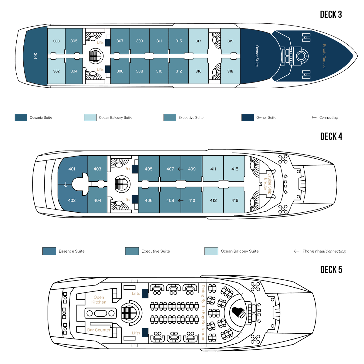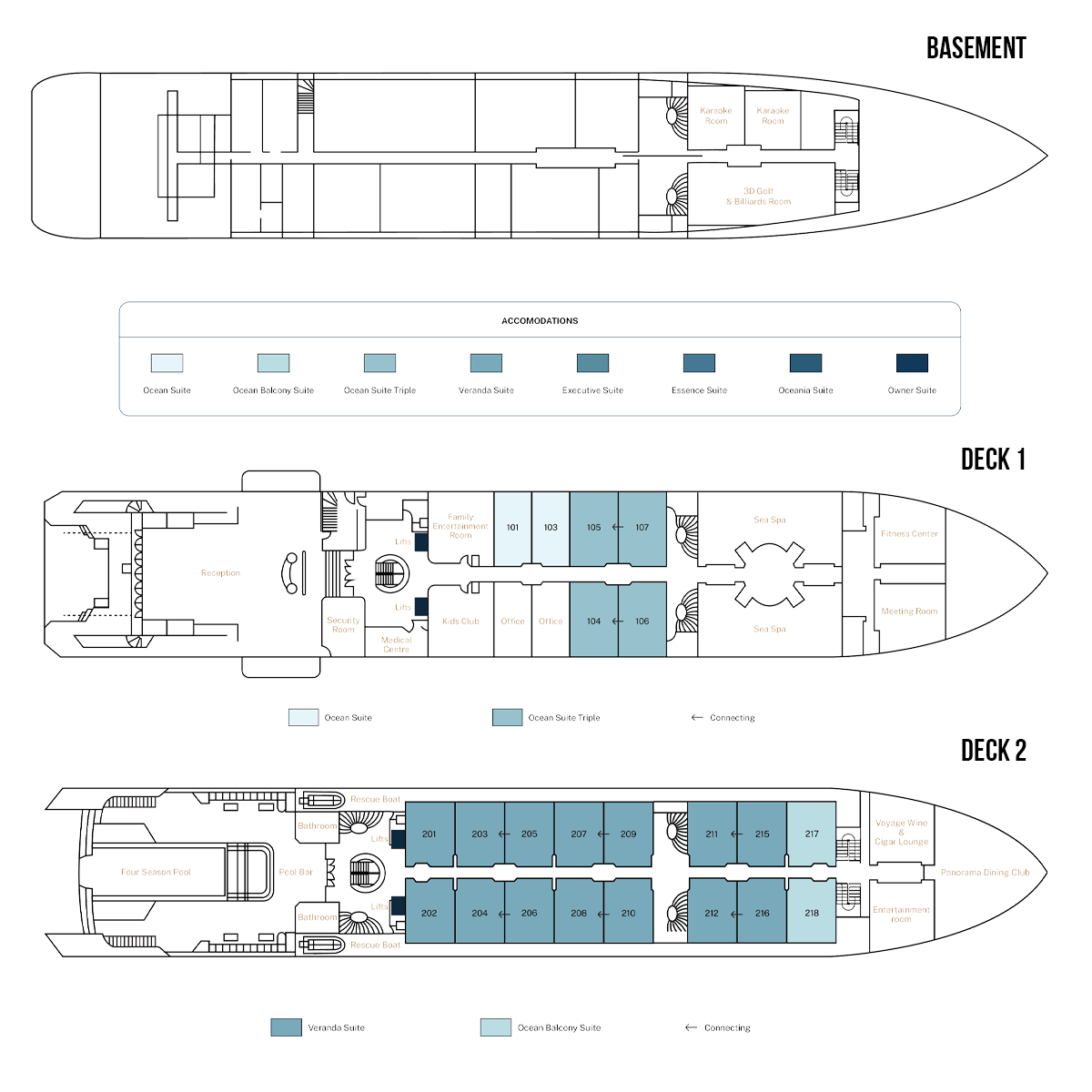 Spanning six decks with a length of 110 meters, Grand Pioneers is designed like a world-class hotel.
