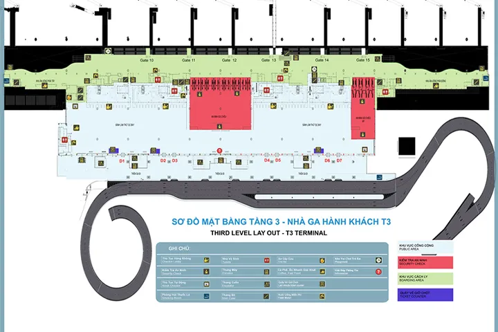 - 1st Floor: This is the main area for departing passengers. The waiting area has 14 boarding gates, numbered from 1 to 14, arranged in order from left to right.