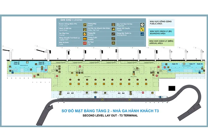 - Ground Floor: Arrival hall where passengers collect their baggage after landing and moving to the outside area to catch transportation. It also offers various amenities such as food courts, restaurants, ATMs, lost luggage assistance, and more.